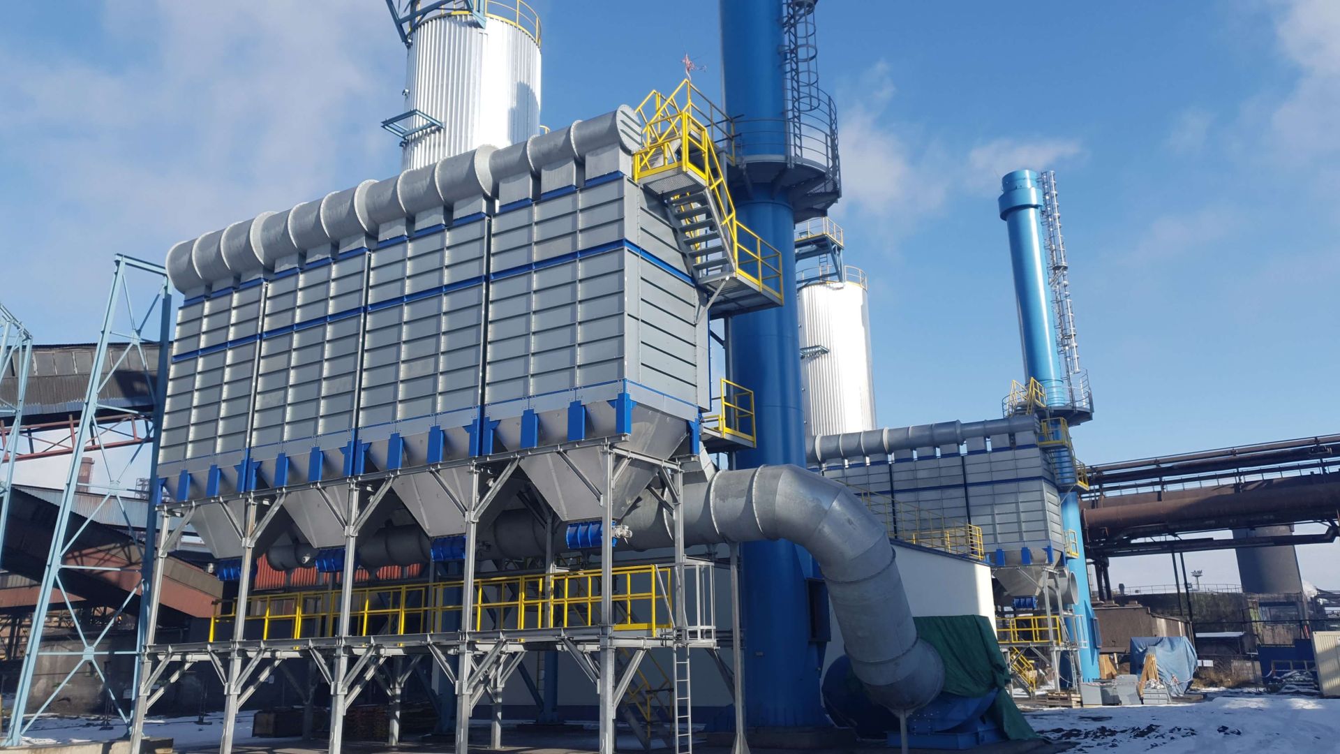 One of the most important references is the application of our dust extraction filter systems in the steel industry. Within our scope of supply we install 4 filter batteries with a total extraction capacity of 450,000 m3/h.