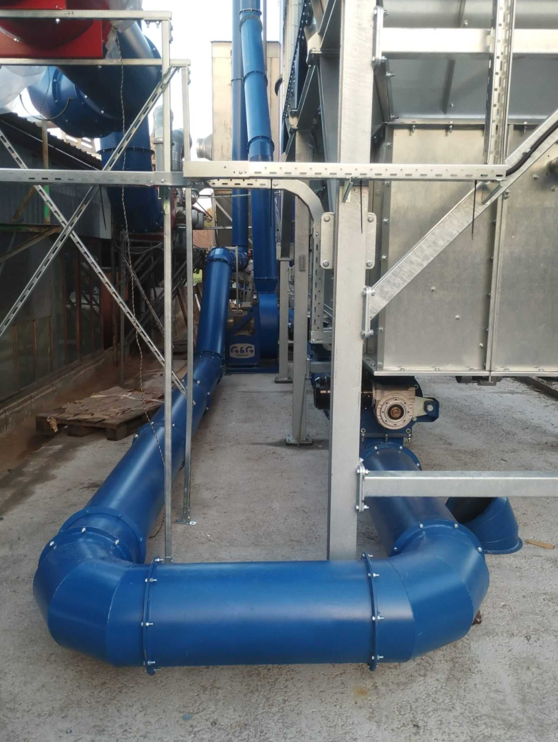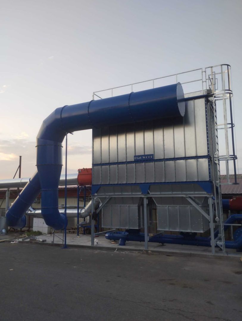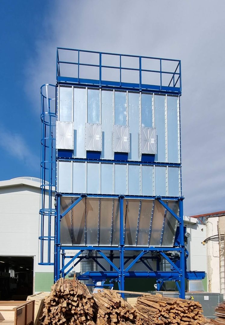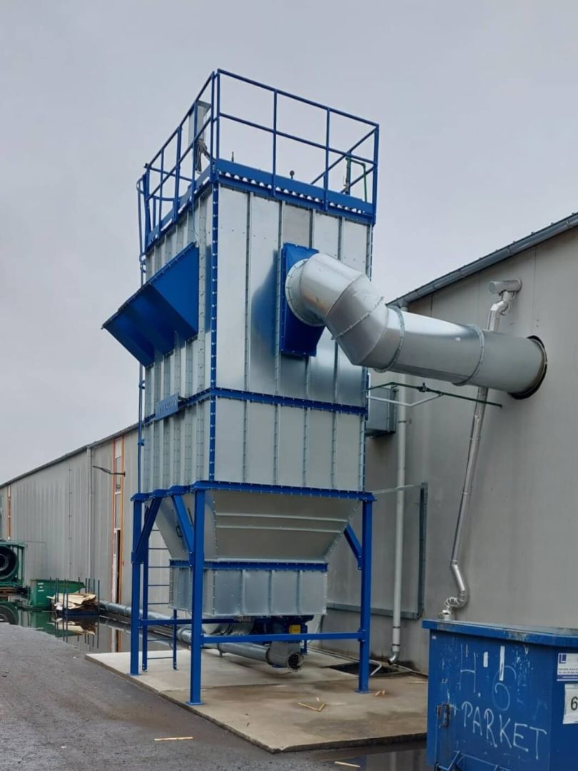 Our reference installation of the Flat Wood filter system for sawdust extraction from wood production. It is a vacuum filtration plant equipped with automatic regeneration of the filter hoses by means of pneumatic vibrating cylinders.